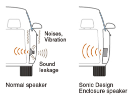 But for car audio, it is normal to install speaker units fully exposed, with the inside door acting as a enclosure. However, doors are not designed for speaker enclosure, therefore noises and vibrations are caused by the resonance of inner body panels and trims, and the sound is tend to be not clear. And also, the sound of inside doors cause an unpleasant sound leakage to the outside of the vehicle.