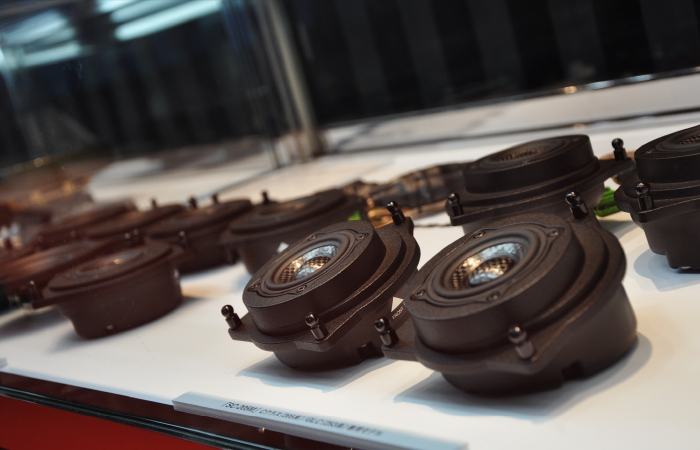 那么「汽車音響的回歸原點」是什么呢?把喇叭作為汽車音響主體和永恒主題的聲麗創(chuàng)音,這次也回歸初心,通過展品向世界傾訴其技術(shù)和魅力。最近,由于數(shù)碼終端等媒介的普及,播放音樂的方式方法大幅增加。汽車廠商原裝AV器材的進化也令人矚目。但無論多么方便先進的系統(tǒng),主角的喇叭系統(tǒng)如果上不去,“好聲音”是不會出來的。所以這次聲麗創(chuàng)音要展現(xiàn)的主題是「高端喇叭制造商」。