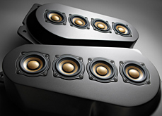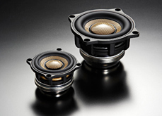 「The Suite」系列產(chǎn)品中的一種揚(yáng)聲組合。左為口徑52mm的寬頻驅(qū)動(dòng)揚(yáng)聲器「SD-N52N」,右為口徑77mm中低音揚(yáng)聲器「SD-N77N」。